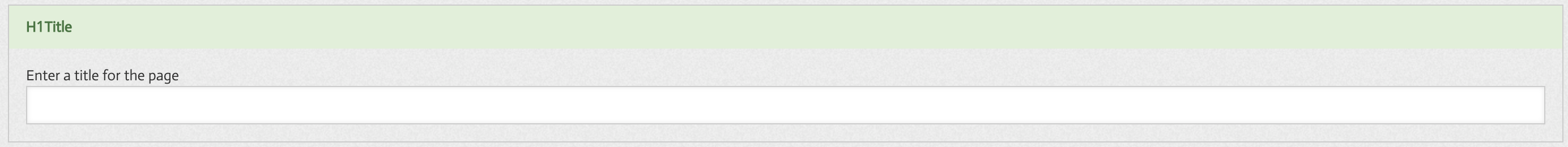 The PageTitle part requires a single text input (as shown below) to set the page title. Typically any text added will be used to generate an H1 tag on the webpage. e.g. <h1>[TEXT ENTERED WILL APPEAR HERE]</h1>, but this entirely depends on the HTML implementation used on the Content Type Template (as explained below).