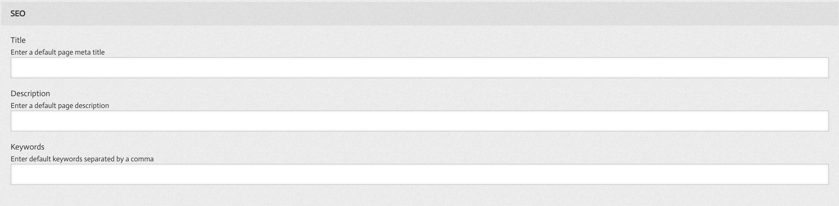If these fields are left empty on the settings screen, no tags are created on the page (Note: A default Title tag will be inserted from the Layout file if neither Title inputs are completed).